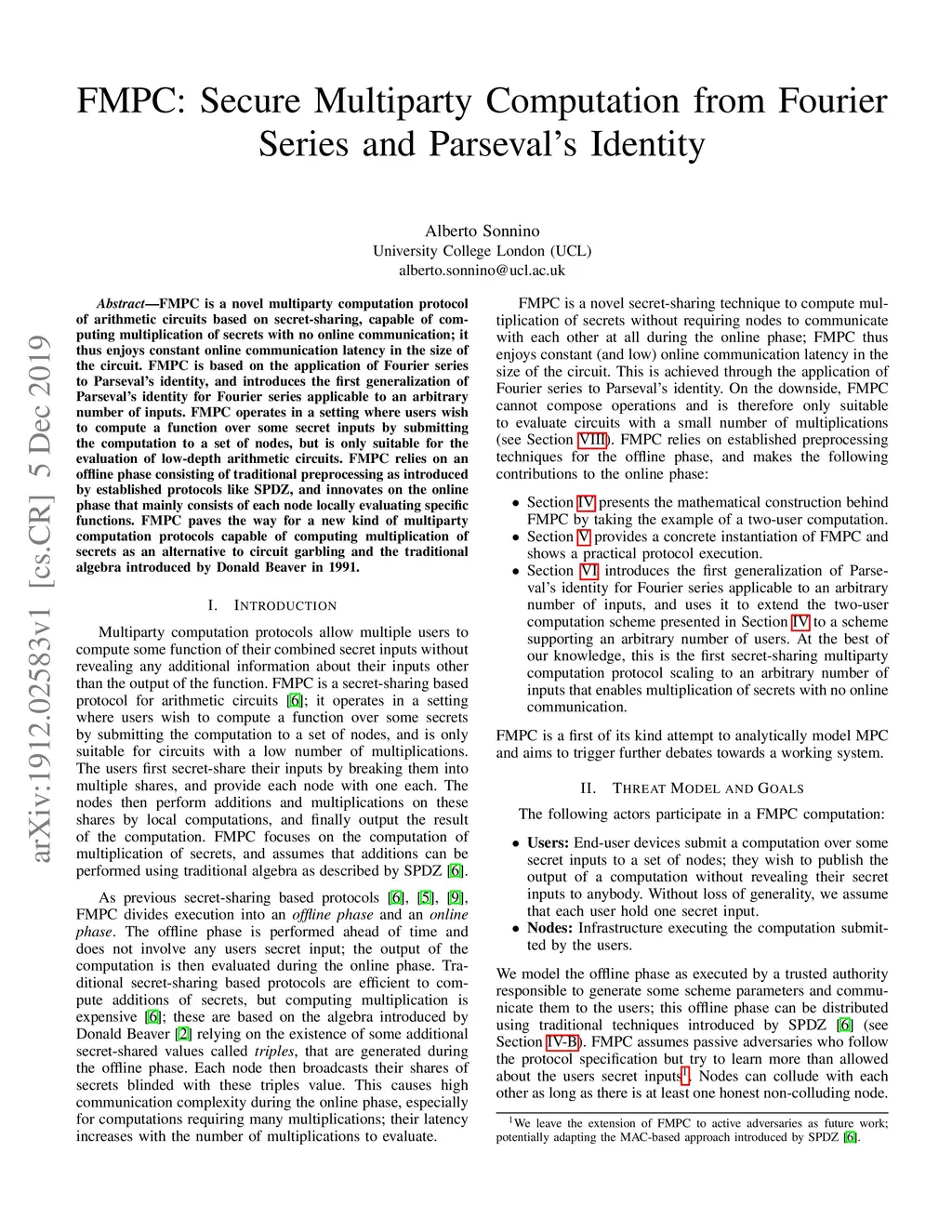 FMPC: Secure Multiparty Computation from Fourier Series and Parseval's