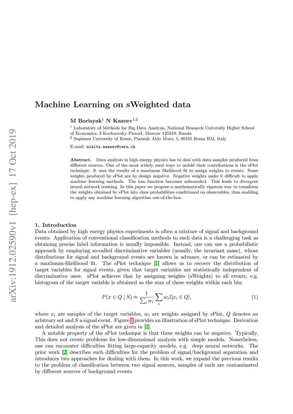 Data analysis in high energy physics has to deal with data samples produced from different sources. One of the most widely used ways to unfold their contributions is the sPlot technique. It uses the results of a maximum likelihood fit to assign weights to events. Some weights produced by sPlot are by design negative. Negative weights make it difficult to apply machine learning methods. The loss function becomes unbounded. This leads to divergent neural network training. In this paper we propose a mathematically rigorous way to transform the weights obtained by sPlot into class probabilities conditioned on observables, thus enabling to apply any machine learning algorithm out-of-the-box.