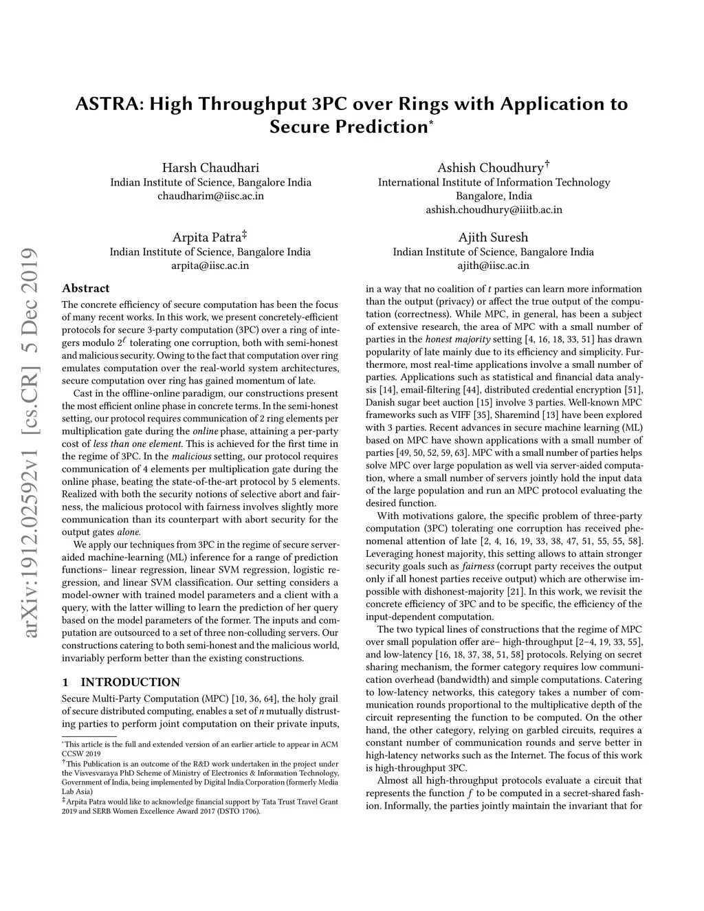 ASTRA: High Throughput 3PC over Rings with Application to Secure