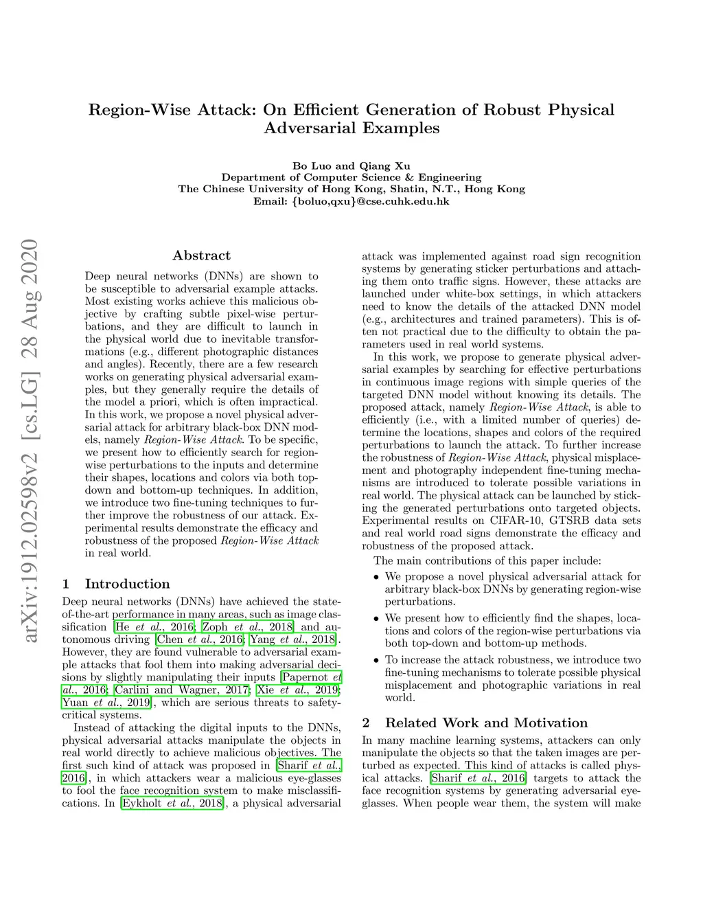 Region-Wise Attack: On Efficient Generation of Robust Physical