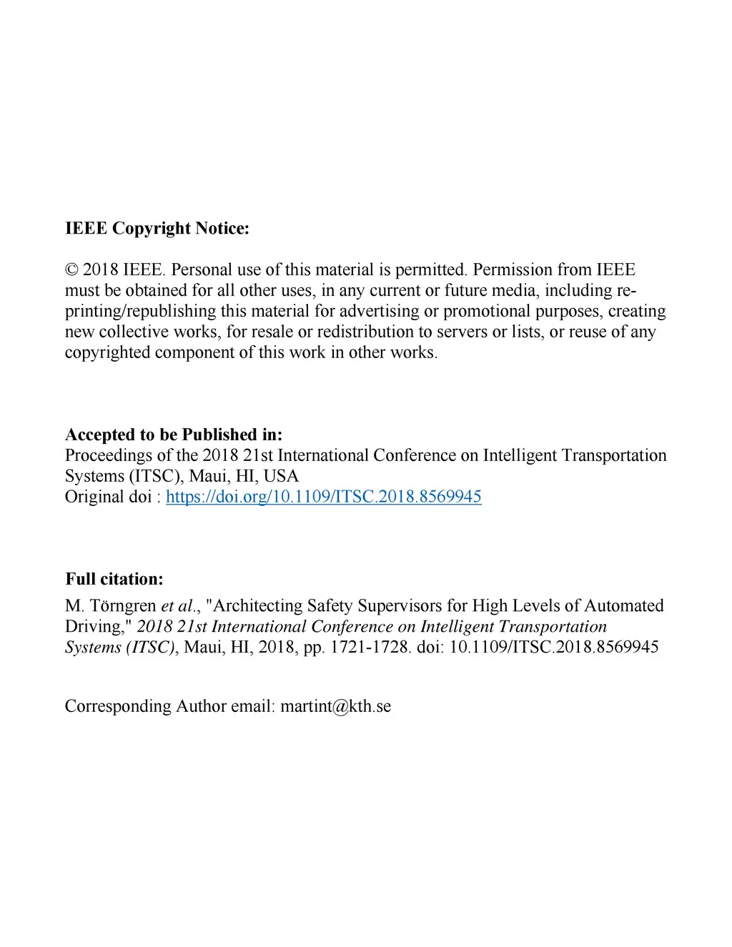 Architecting Safety Supervisors for High Levels of Automated Driving