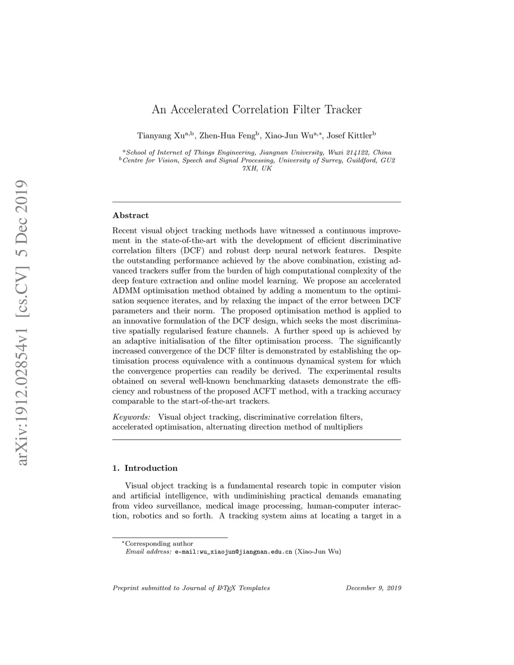Recent visual object tracking methods have witnessed a continuous improvement in the state-of-the-art with the development of efficient discriminative correlation filters (DCF) and robust deep neural network features. Despite the outstanding performance achieved by the above combination, existing advanced trackers suffer from the burden of high computational complexity of the deep feature extraction and online model learning. We propose an accelerated ADMM optimisation method obtained by adding a momentum to the optimisation sequence iterates, and by relaxing the impact of the error between DCF parameters and their norm. The proposed optimisation method is applied to an innovative formulation of the DCF design, which seeks the most discriminative spatially regularised feature channels. A further speed up is achieved by an adaptive initialisation of the filter optimisation process. The significantly increased convergence of the DCF filter is demonstrated by establishing the optimisation process equivalence with a continuous dynamical system for which the convergence properties can readily be derived. The experimental results obtained on several well-known benchmarking datasets demonstrate the efficiency and robustness of the proposed ACFT method, with a tracking accuracy comparable to the start-of-the-art trackers.