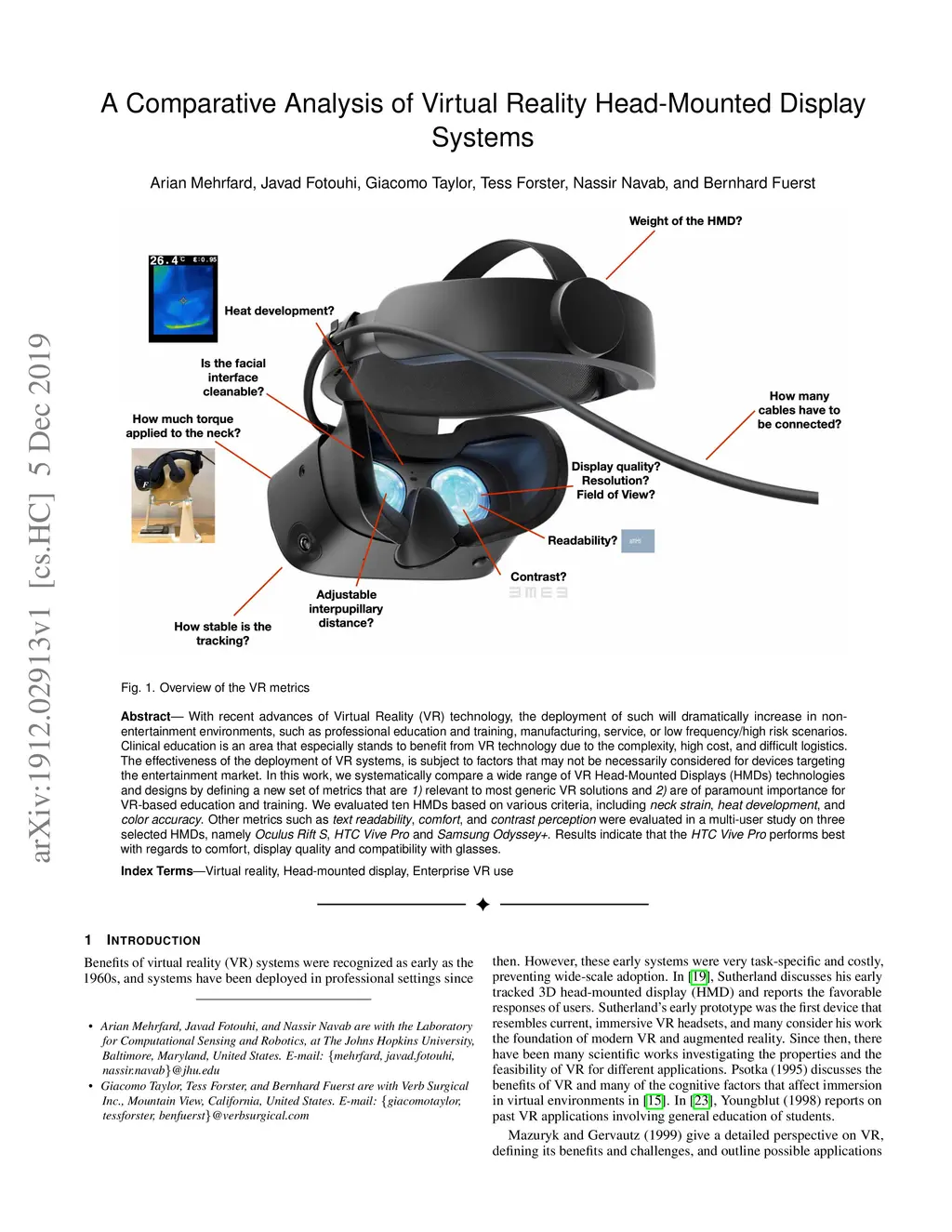 A Comparative Analysis of Virtual Reality Head-Mounted Display Systems