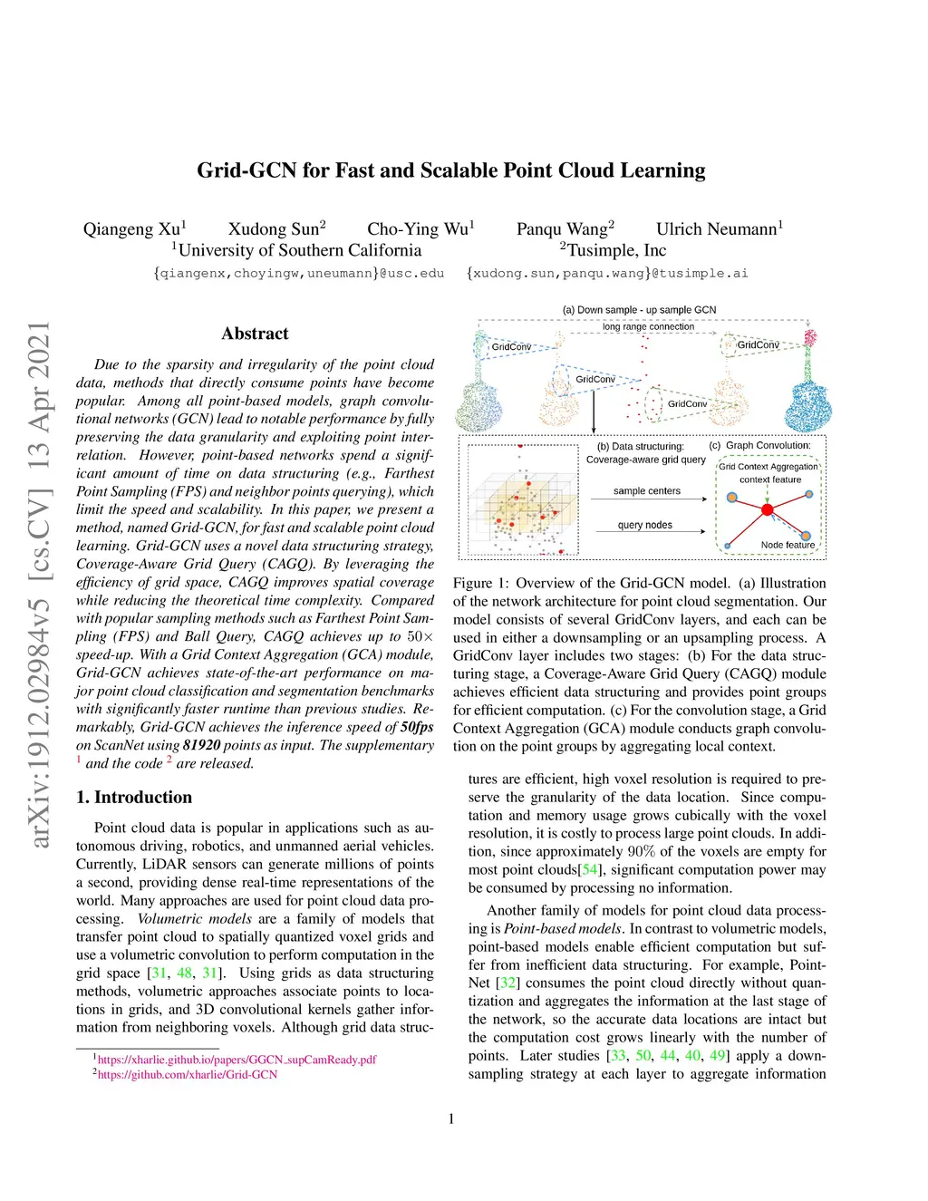 Grid-GCN for Fast and Scalable Point Cloud Learning