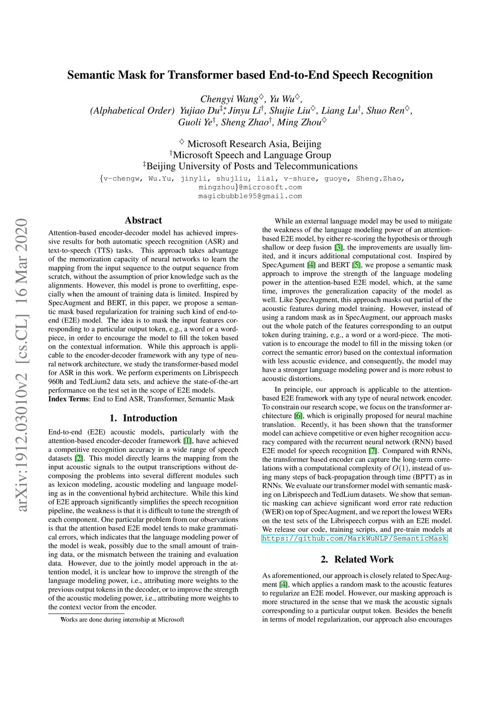 Semantic Mask for Transformer based End-to-End Speech Recognition