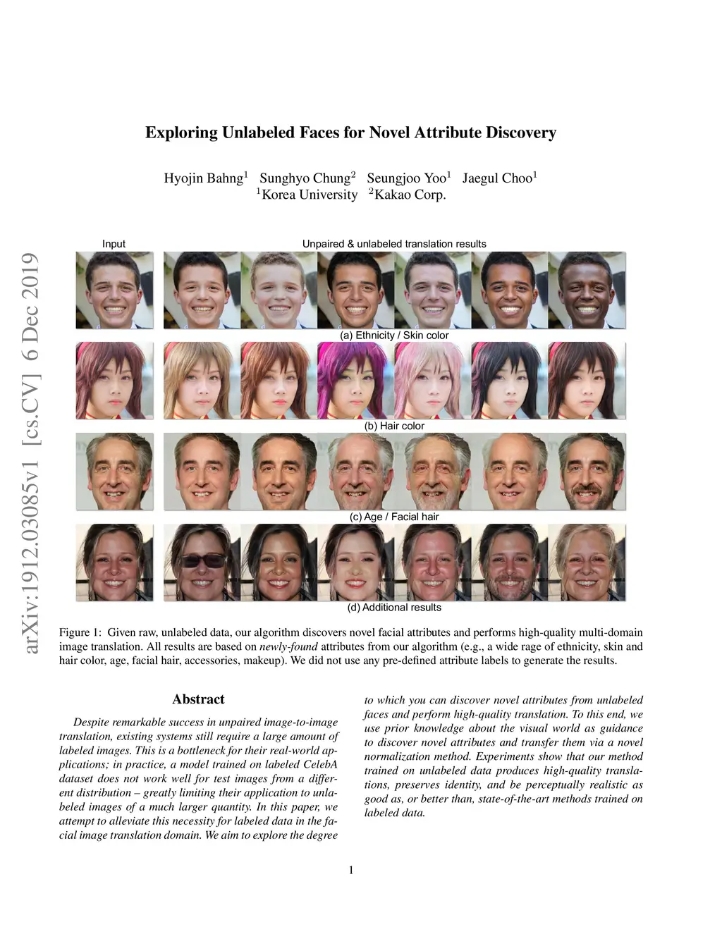 Despite remarkable success in unpaired image-to-image translation, existing systems still require a large amount of labeled images. This is a bottleneck for their real-world applications; in practice, a model trained on labeled CelebA dataset does not work well for test images from a different distribution -- greatly limiting their application to unlabeled images of a much larger quantity. In this paper, we attempt to alleviate this necessity for labeled data in the facial image translation domain. We aim to explore the degree to which you can discover novel attributes from unlabeled faces and perform high-quality translation. To this end, we use prior knowledge about the visual world as guidance to discover novel attributes and transfer them via a novel normalization method. Experiments show that our method trained on unlabeled data produces high-quality translations, preserves identity, and be perceptually realistic as good as, or better than, state-of-the-art methods trained on labeled data.