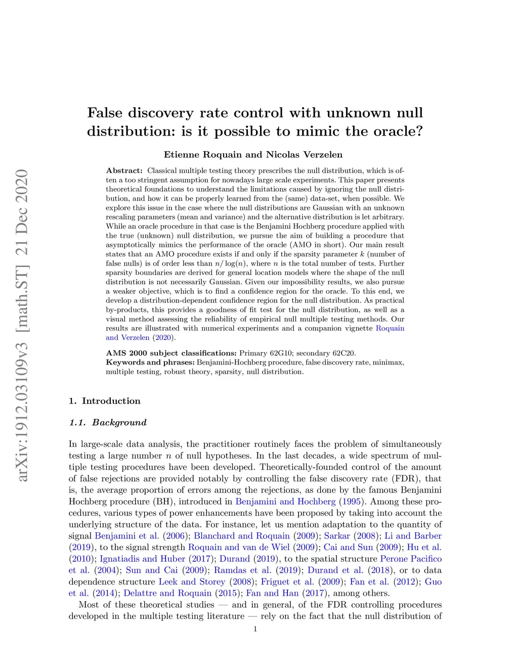 When performing multiple testing, adjusting the distribution of the null hypotheses is ubiquitous in applications. However, the cost of such an operation remains largely unknown in terms of false discovery proportion (FDP) and true discovery proportion (TDP). We explore this issue in the most classical case where the null hypotheses are Gaussian with an unknown rescaling parameters (mean and variance) and where the Benjamini-Hochberg (BH) procedure is applied after a data-rescaling step. Our main result identifies the following sparsity boundary: an asymptotically optimal rescaling (in some specific sense) exists if and only if the sparsity (number of false nulls) is of order less than , where is the total number of tests. Our proof relies on new non-asymptotic lower bounds on FDP/TDP, which are of independent interest and share similarities with those developed in the minimax robust statistical theory. Further sparsity boundaries are derived for general location models for which the shape of the null distribution is not necessarily Gaussian.