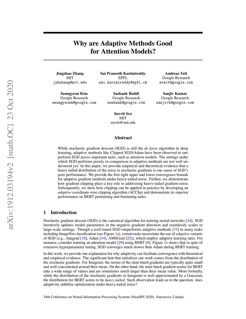 Why are Adaptive Methods Good for Attention Models?