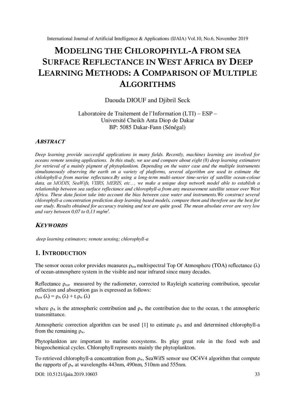 Modeling the Chlorophyll-a from Sea Surface Reflectance in West Africa