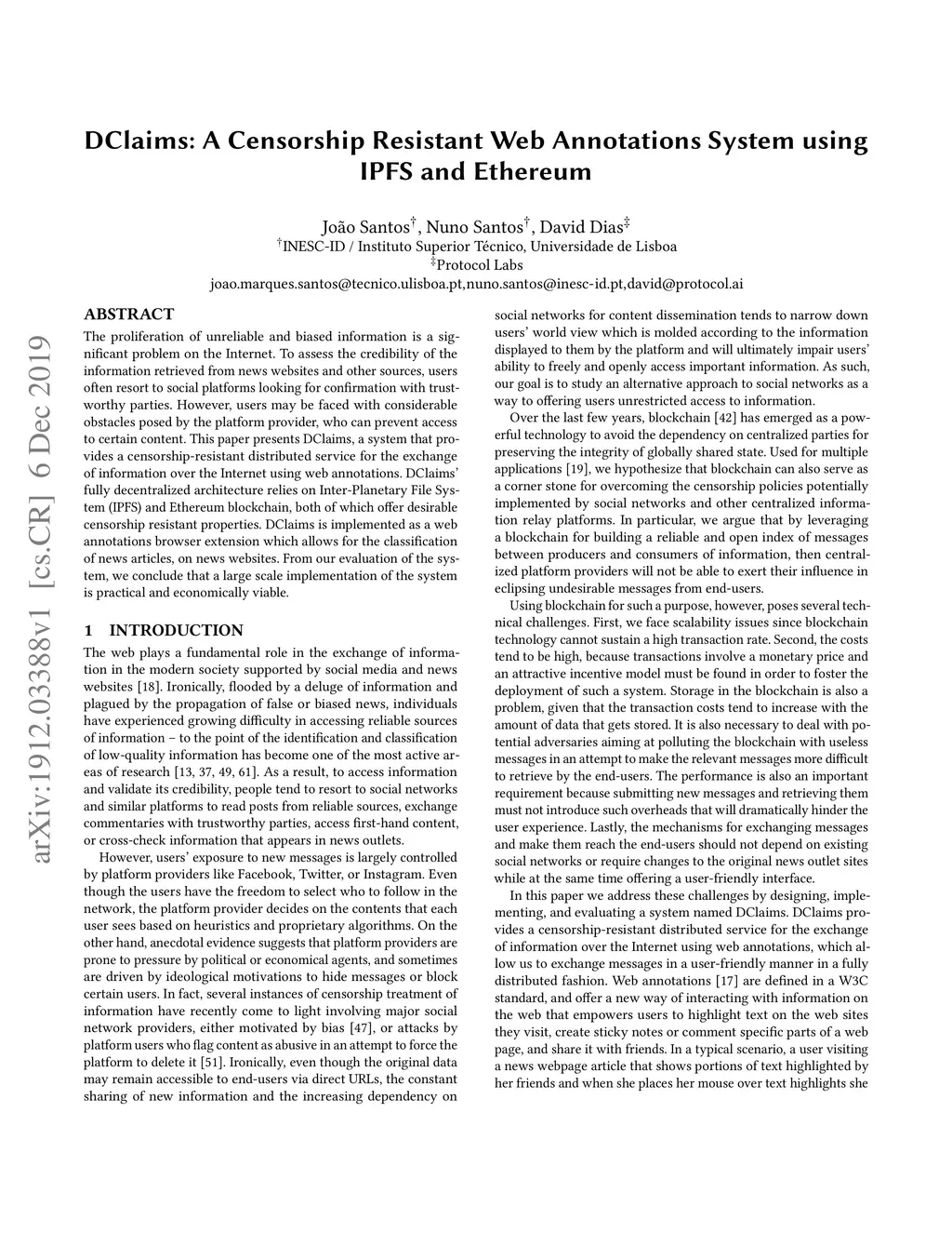 DClaims: A Censorship Resistant Web Annotations System using IPFS and