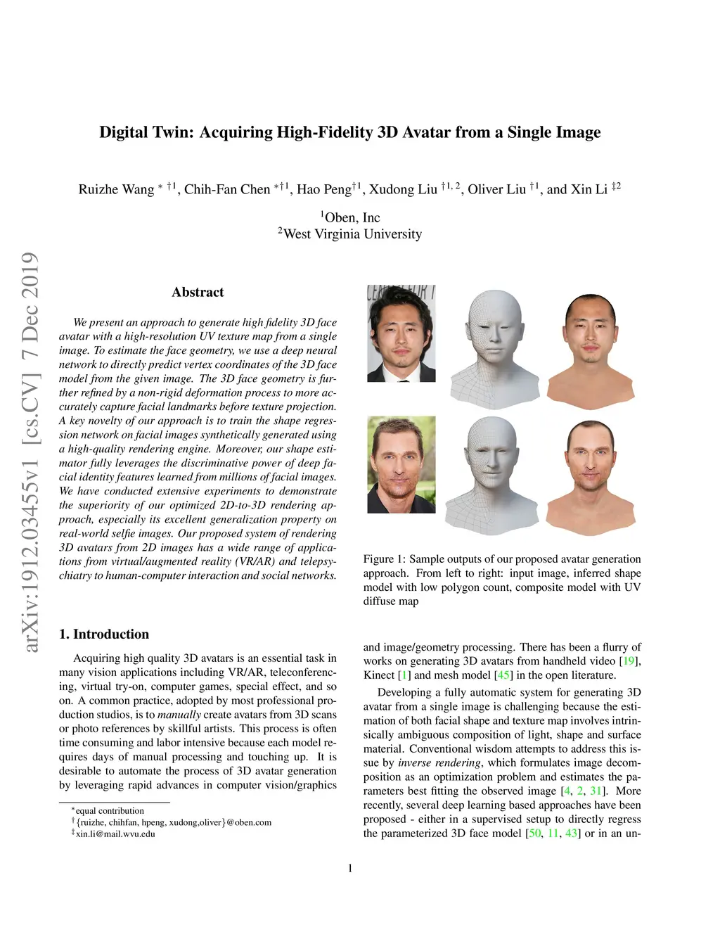 Digital Twin: Acquiring High-Fidelity 3D Avatar from a Single Image