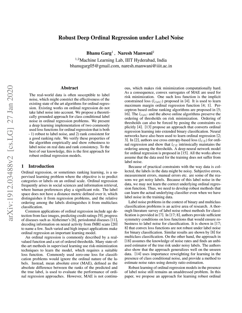 The real-world data is often susceptible to label noise, which might constrict the effectiveness of the existing state of the art algorithms for ordinal regression. Existing works on ordinal regression do not take label noise into account. We propose a theoretically grounded approach for class conditional label noise in ordinal regression problems. We present a deep learning implementation of two commonly used loss functions for ordinal regression that is both - 1) robust to label noise, and 2) rank consistent for a good ranking rule. We verify these properties of the algorithm empirically and show robustness to label noise on real data and rank consistency. To the best of our knowledge, this is the first approach for robust ordinal regression models.