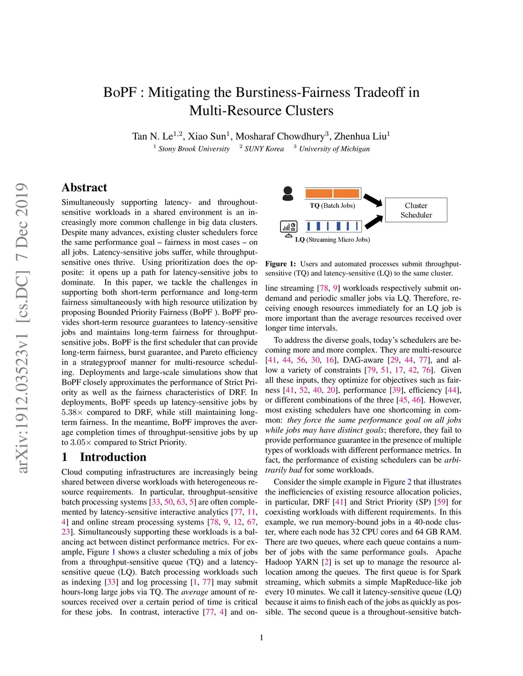 BoPF: Mitigating the Burstiness-Fairness Tradeoff in Multi-Resource