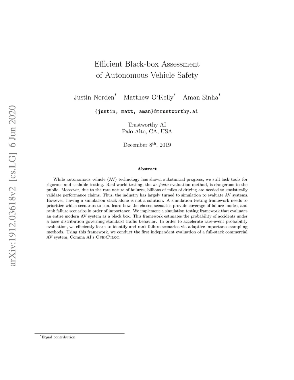 Efficient Black-box Assessment of Autonomous Vehicle Safety