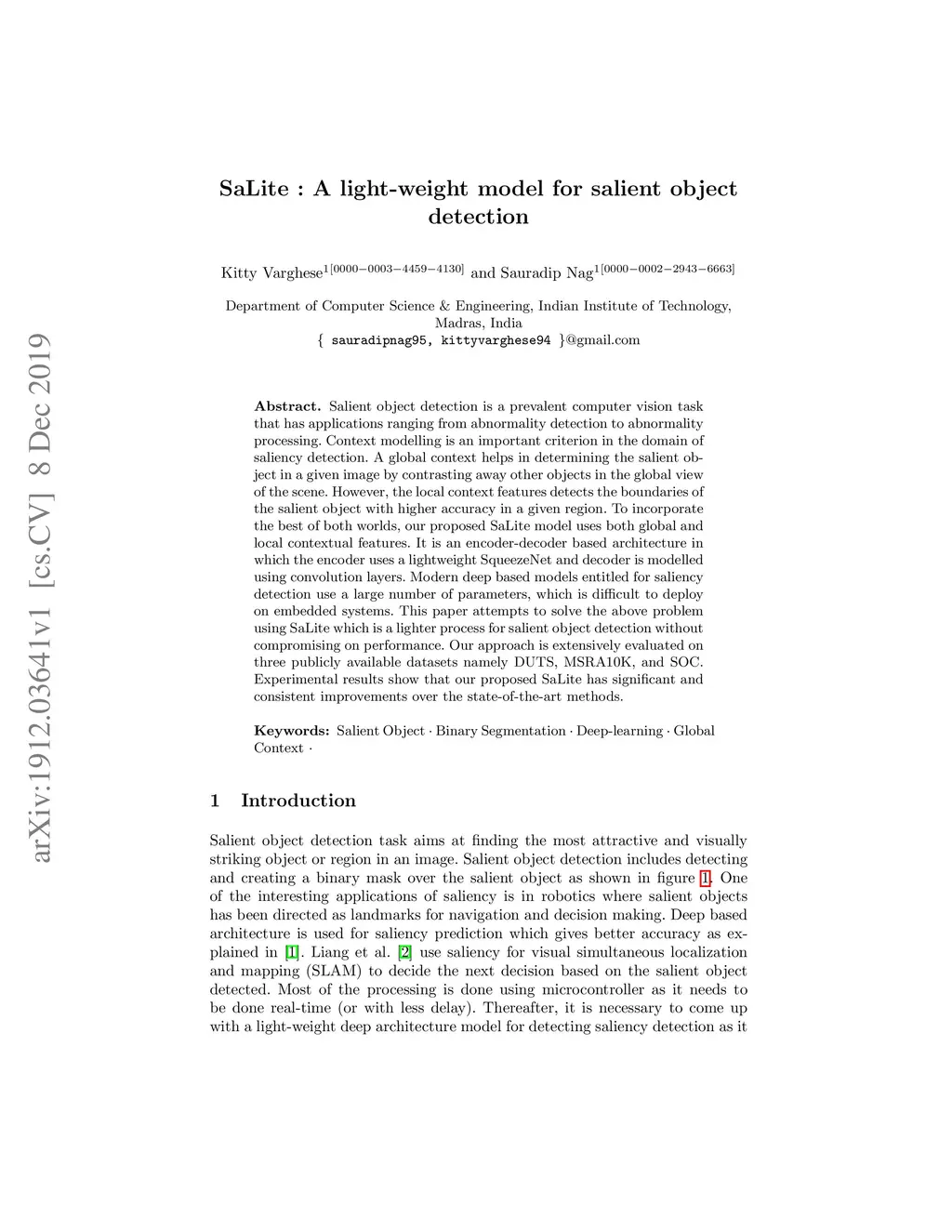 SaLite : A light-weight model for salient object detection