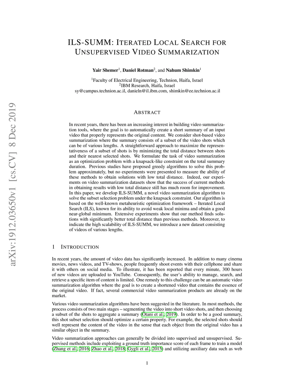 ILS-SUMM: Iterated Local Search for Unsupervised Video Summarization