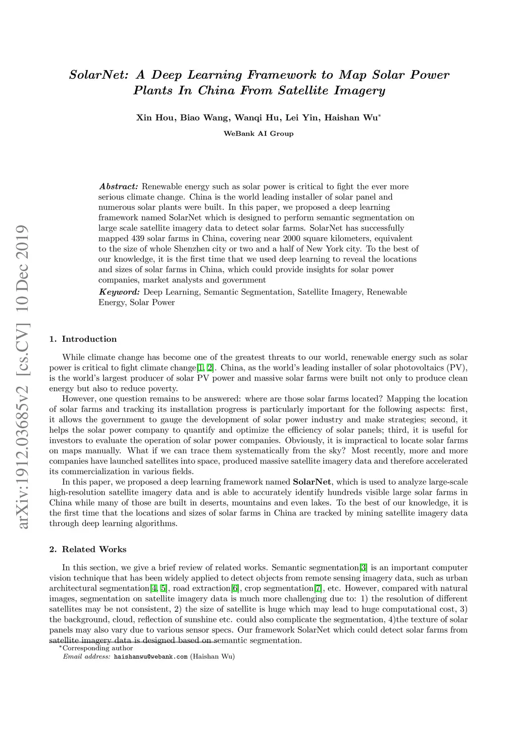 SolarNet: A Deep Learning Framework to Map Solar Power Plants In China