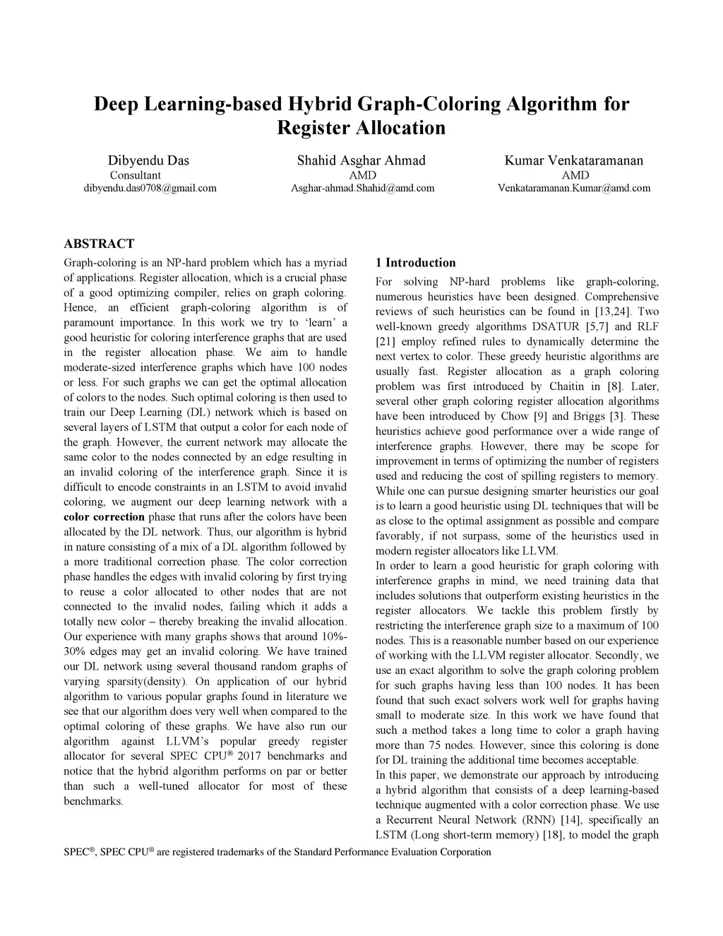Deep Learning-based Hybrid Graph-Coloring Algorithm for Register