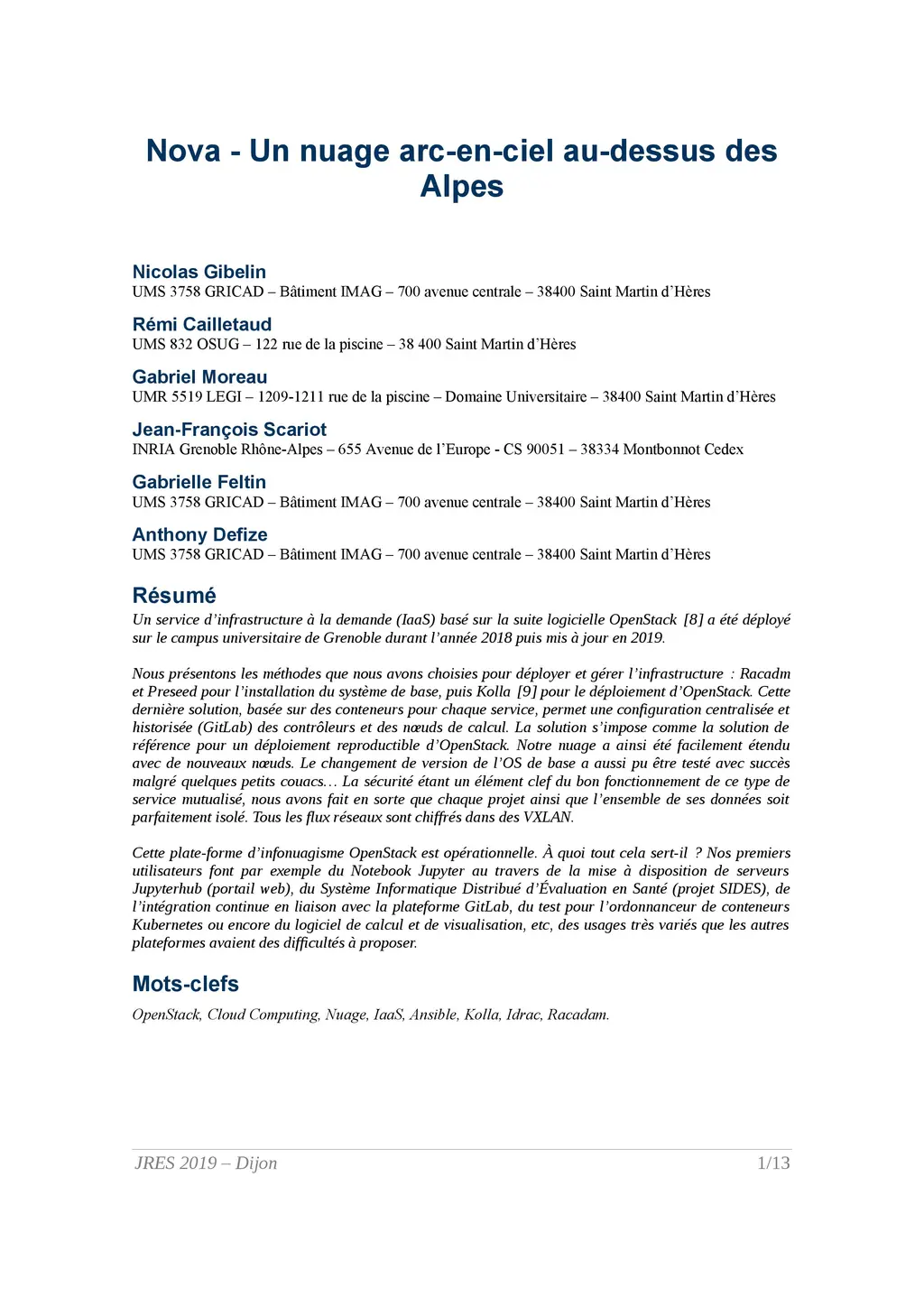 A pooled and shared on-demand Infrastructure as a Service (IaaS), based on the Openstack software suite, was rolled out on the Grenoble university campus in 2018 and updated in 2019.We present the methods used to deploy and manage the infrastructure: racadm and preseed for basic system installation, then Kolla for Openstack deployment. This latter solution, based on containers for each service, enables a centralised and logged configuration (GitLab) of controllers and calculation nodes. The solution is the benchmark solution for a reproducible deployment of Openstack. We have been able to expand our cloud easily with new nodes. The change in version of the basic OS was also successfully tested despite a few small hitches... As security is a key element in the proper operation of this type of shared service, each project has been made watertight and its data perfectly isolated from other projects, thanks to the encryption of all network flows in VXLANs.This OpenStack infotainment platform is operational. What is it all for? For example, our first users use the Jupyter Notebook through the provision of Jupyterhub servers (web portal); the Distributed Health Assessment IT System (SIDES project); the continuous integration in connection with the GitLab platform; the test for the Kubernetes container scheduler or the calculation and visualisation software, etc. Highly varied uses that other platforms had difficulty offering.Nova, a new platform, was born.