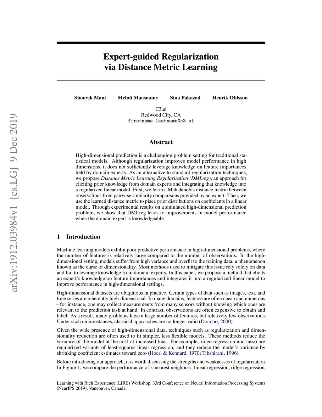 Expert-guided Regularization via Distance Metric Learning