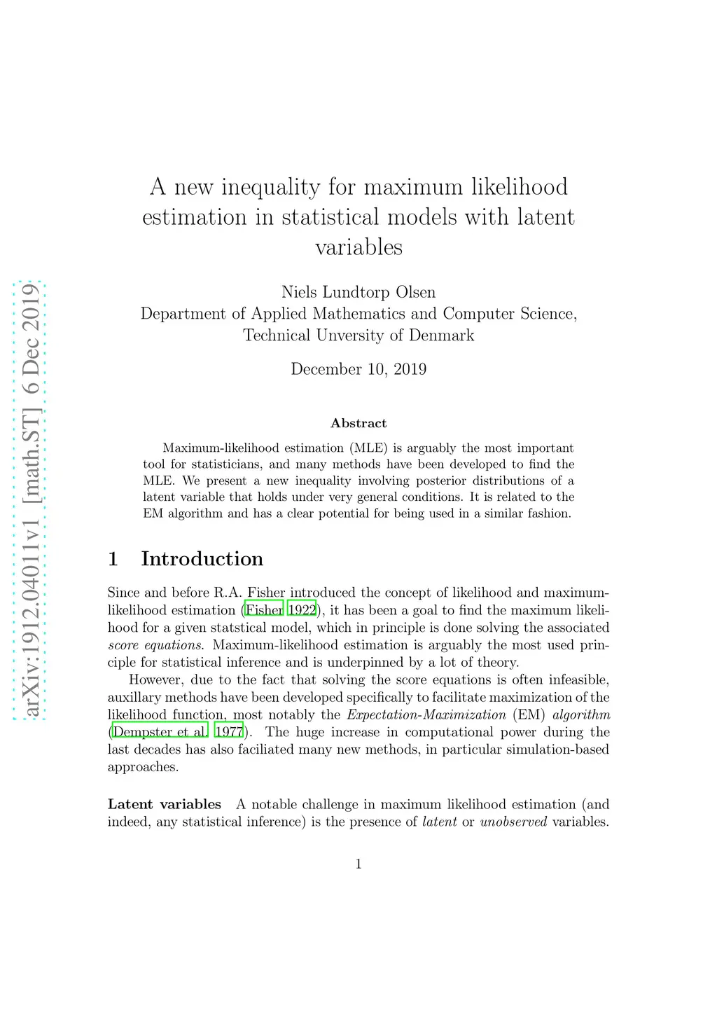 Maximum-likelihood estimation (MLE) is arguably the most important tool for statisticians, and many methods have been developed to find the MLE. We present a new inequality involving posterior distributions of a latent variable that holds under very general conditions. It is related to the EM algorithm and has a clear potential for being used in a similar fashion.