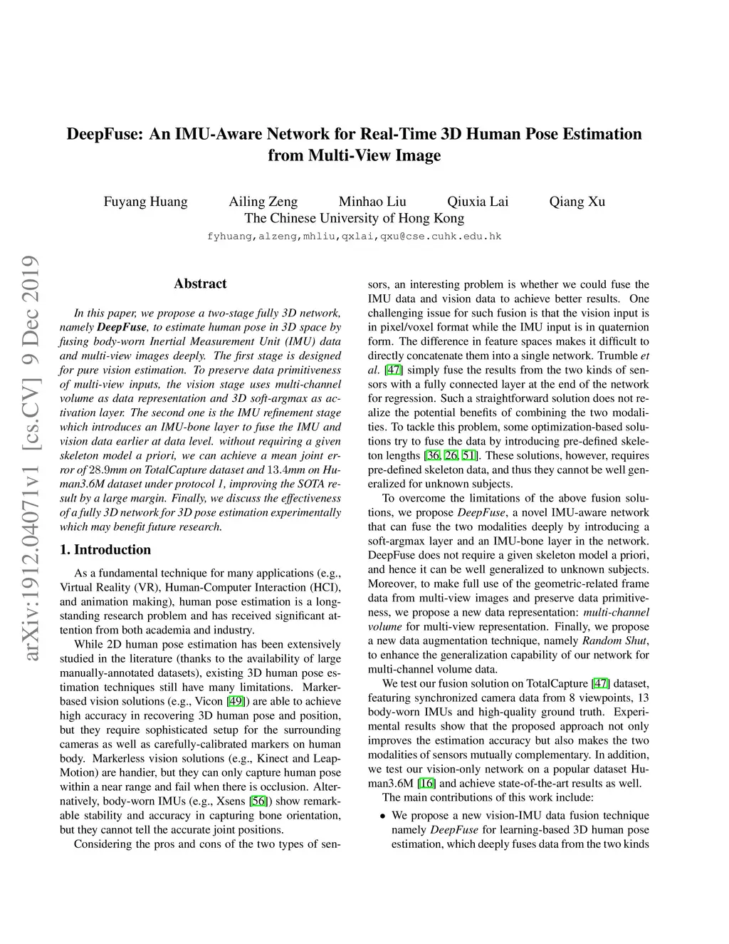 DeepFuse: An IMU-Aware Network for Real-Time 3D Human Pose Estimation