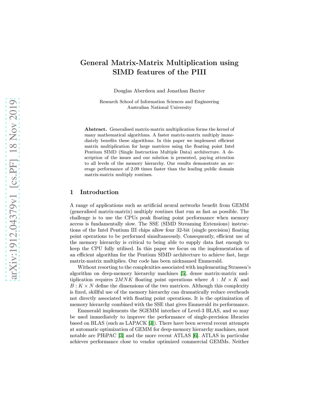 General Matrix-Matrix Multiplication Using SIMD features of the PIII