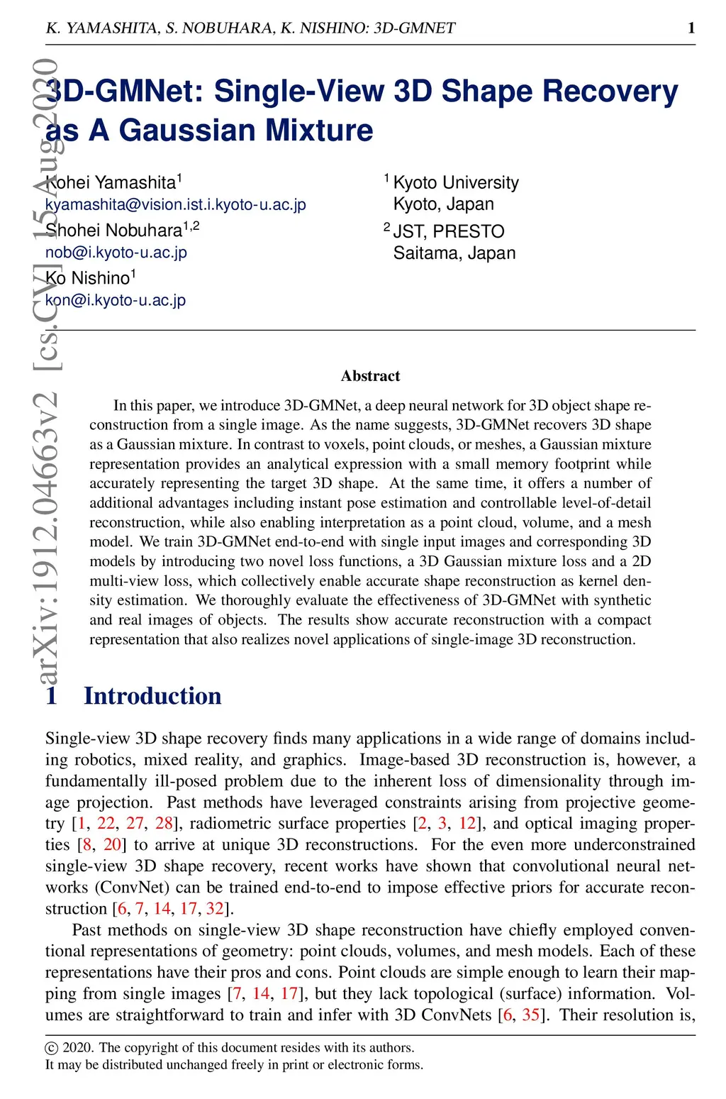 3D-GMNet: Single-View 3D Shape Recovery as A Gaussian Mixture