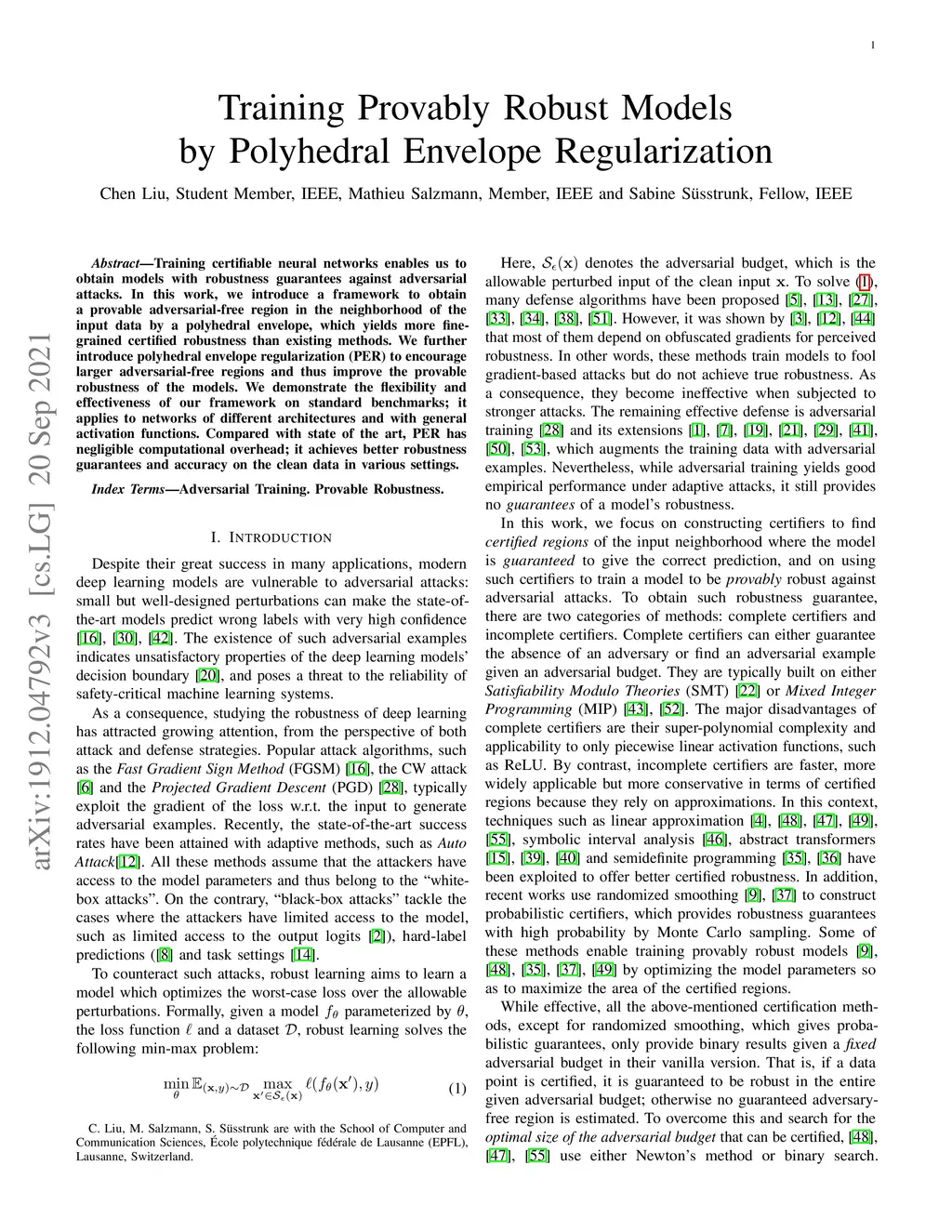 Certifying neural networks enables one to offer guarantees on a model's robustness. In this work, we use linear approximation to obtain an upper and lower bound of the model's output when the input data is perturbed within a predefined adversarial budget. This allows us to bound the adversary-free region in the data neighborhood by a polyhedral envelope, and calculate robustness guarantees based on this geometric approximation. Compared with existing methods, our approach gives a finer-grain quantitative evaluation of a model's robustness. Therefore, the certification method can not only obtain better certified bounds than the state-of-the-art techniques given the same adversarial budget but also derives a faster search scheme for the optimal adversarial budget. Furthermore, we introduce a simple regularization scheme based on our method that enables us to effectively train robust models.