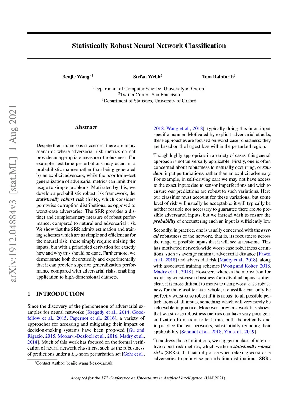 Statistically Robust Neural Network Classification