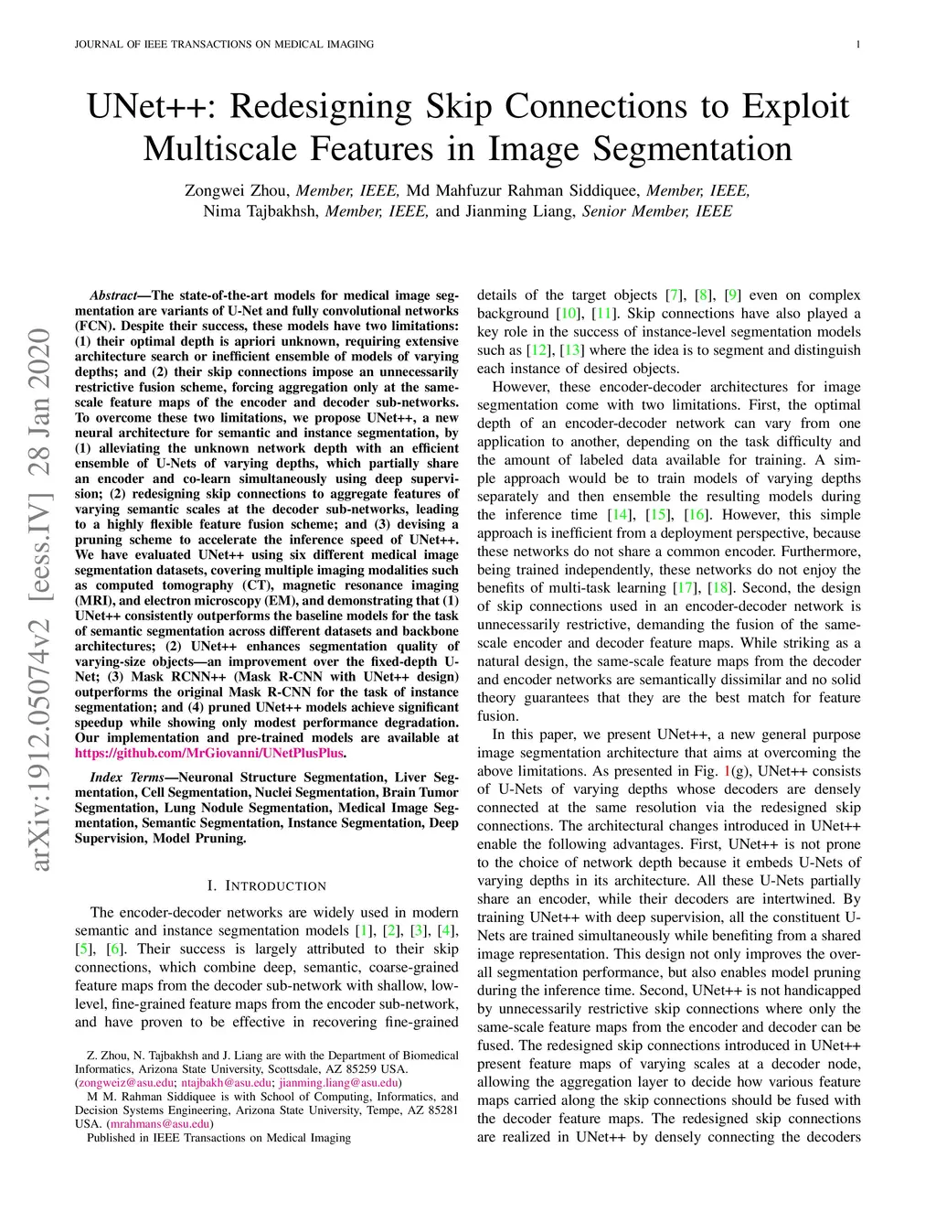 UNet++: Redesigning Skip Connections to Exploit Multiscale Features in