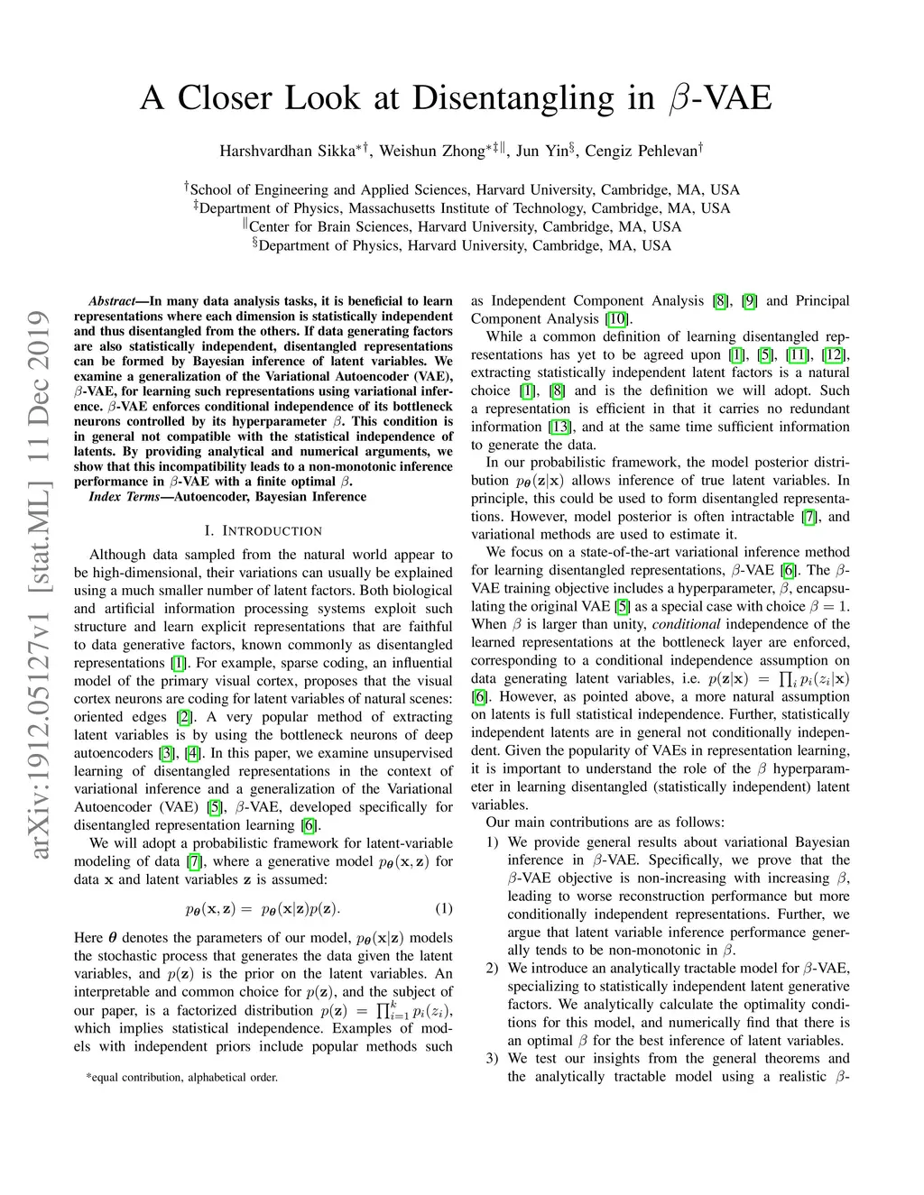 In many data analysis tasks, it is beneficial to learn representations where each dimension is statistically independent and thus disentangled from the others. If data generating factors are also statistically independent, disentangled representations can be formed by Bayesian inference of latent variables. We examine a generalization of the Variational Autoencoder (VAE), -VAE, for learning such representations using variational inference. -VAE enforces conditional independence of its bottleneck neurons controlled by its hyperparameter . This condition is in general not compatible with the statistical independence of latents. By providing analytical and numerical arguments, we show that this incompatibility leads to a non-monotonic inference performance in -VAE with a finite optimal .