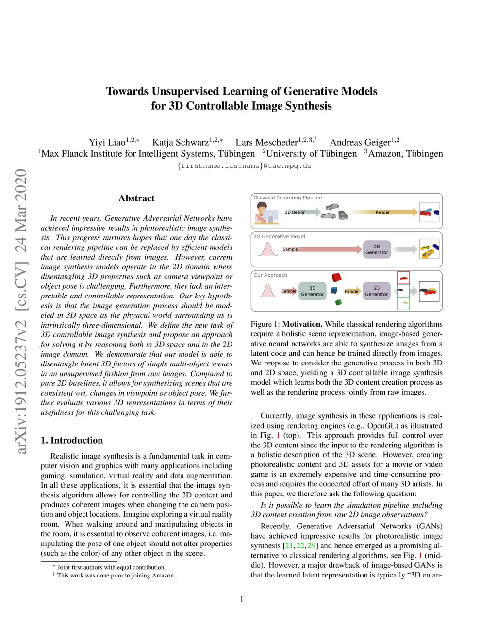 Towards Unsupervised Learning of Generative Models for 3D Controllable