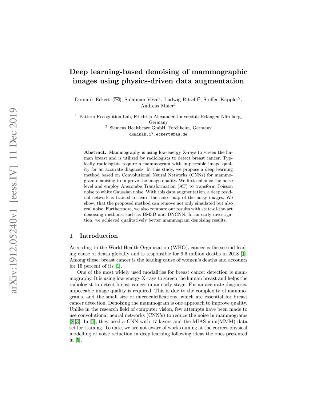 Deep Learning-based Denoising of Mammographic Images using