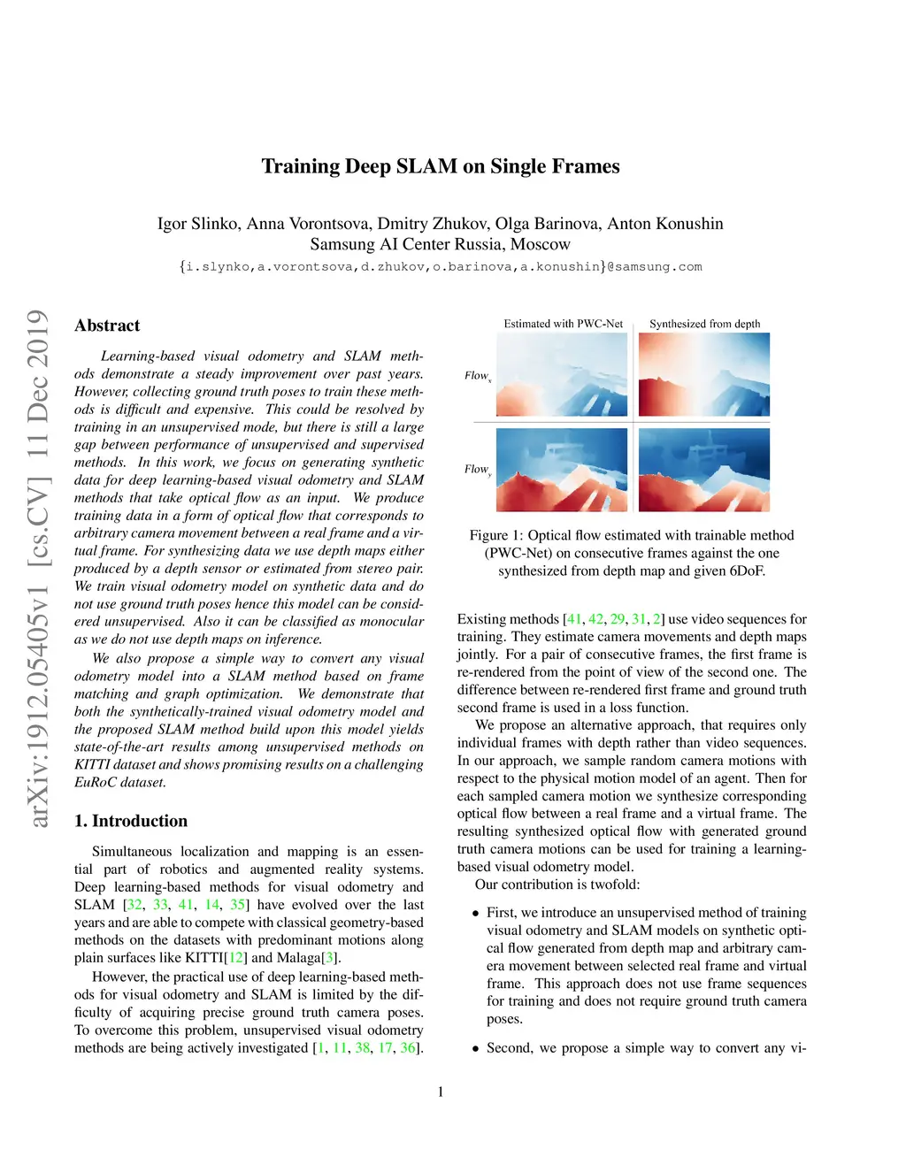 Training Deep SLAM on Single Frames