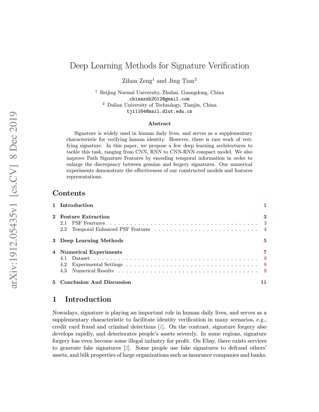 Deep Learning Methods for Signature Verification