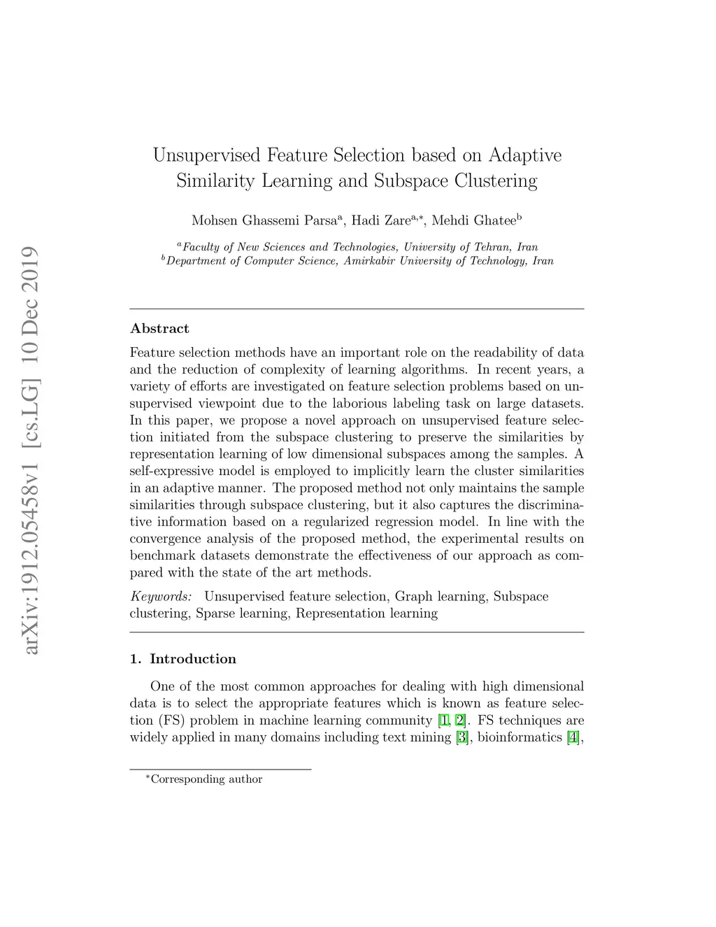 Unsupervised Feature Selection based on Adaptive Similarity Learning and