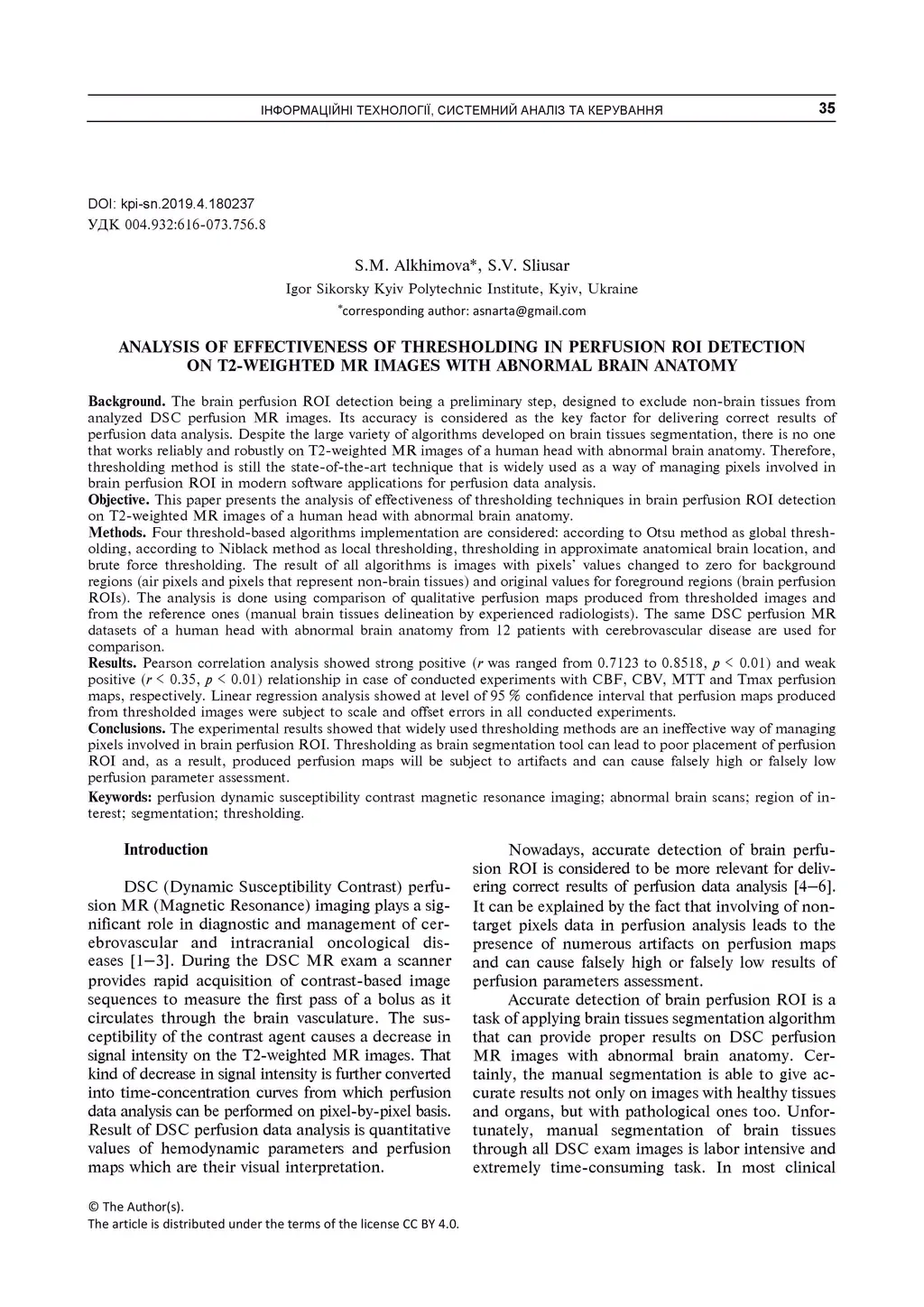 Analysis of effectiveness of thresholding in perfusion ROI detection on