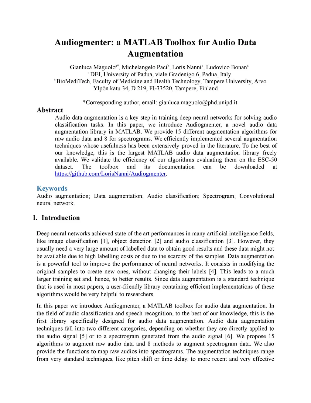 Audiogmenter: a MATLAB Toolbox for Audio Data Augmentation