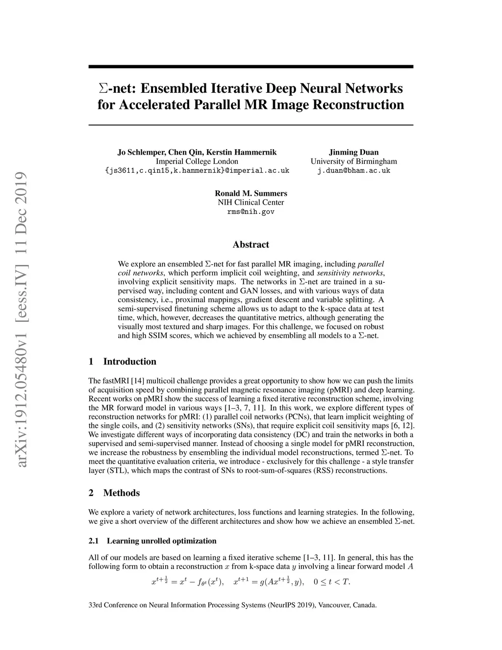 We explore an ensembled -net for fast parallel MR imaging, including parallel coil networks, which perform implicit coil weighting, and sensitivity networks, involving explicit sensitivity maps. The networks in -net are trained in a supervised way, including content and GAN losses, and with various ways of data consistency, i.e., proximal mappings, gradient descent and variable splitting. A semi-supervised finetuning scheme allows us to adapt to the k-space data at test time, which, however, decreases the quantitative metrics, although generating the visually most textured and sharp images. For this challenge, we focused on robust and high SSIM scores, which we achieved by ensembling all models to a -net.