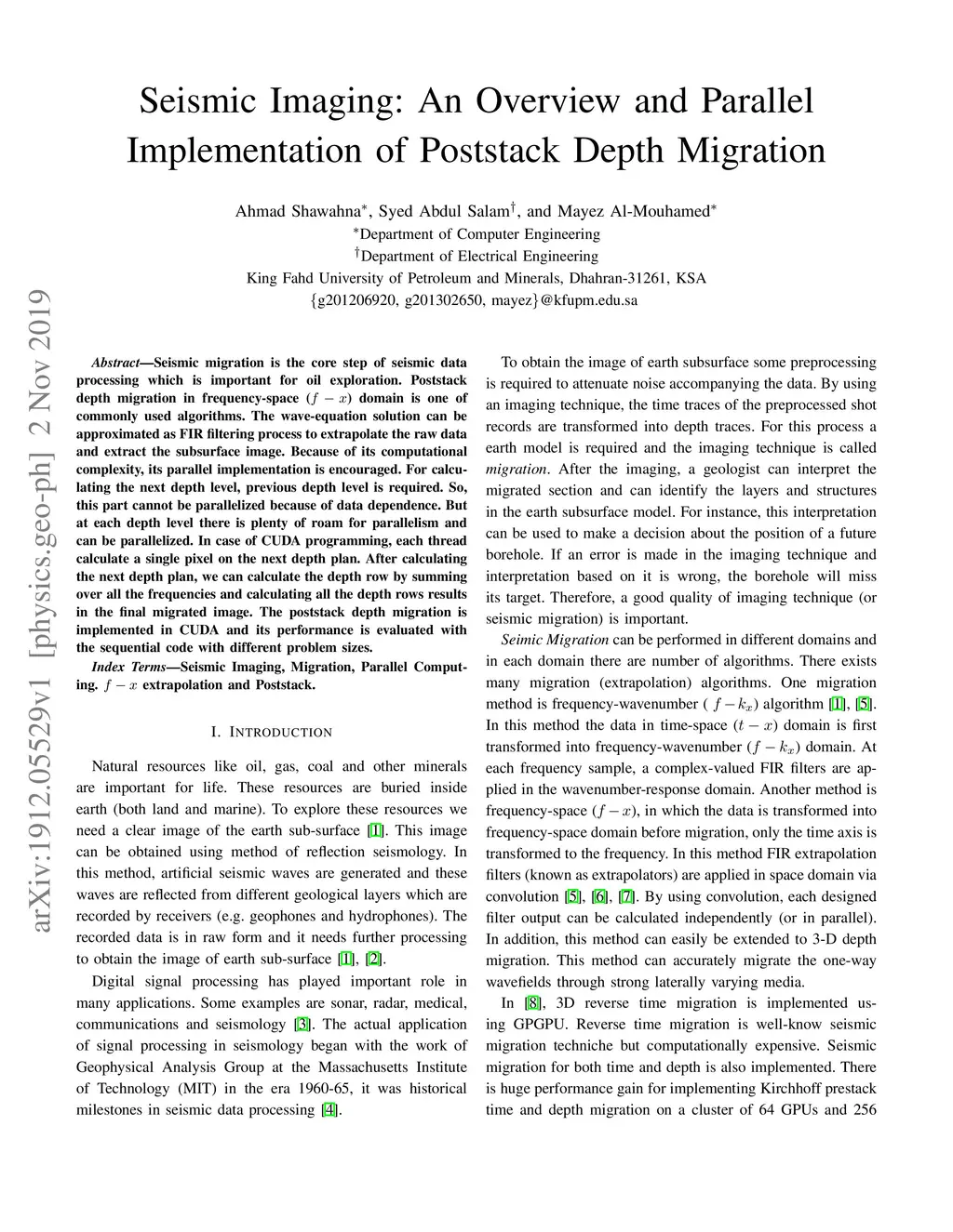 Seismic Imaging: An Overview and Parallel Implementation of Poststack