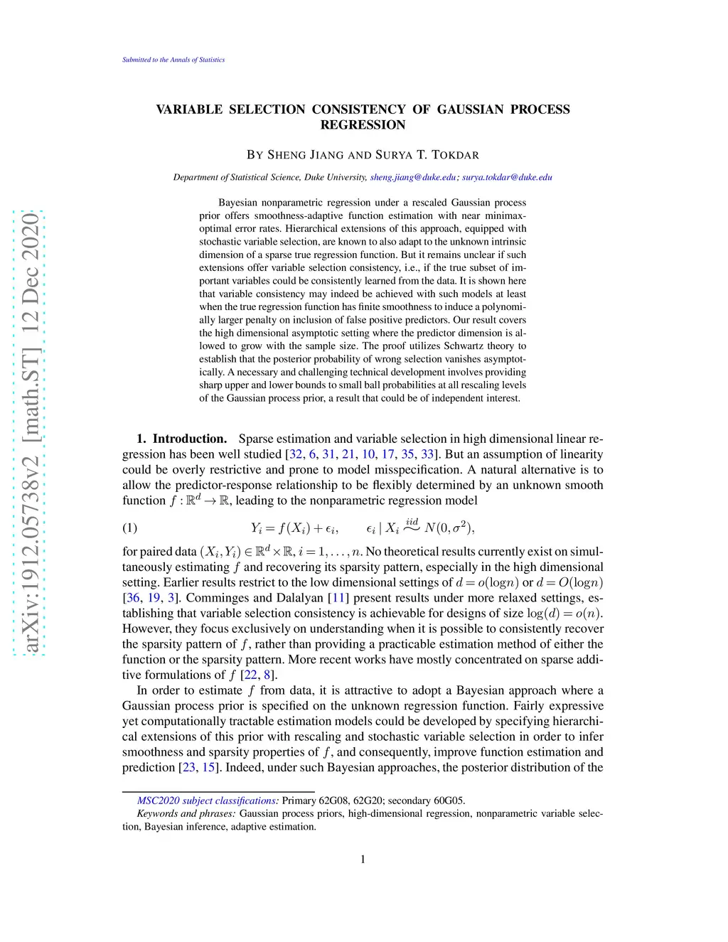 Variable Selection Consistency of Gaussian Process Regression