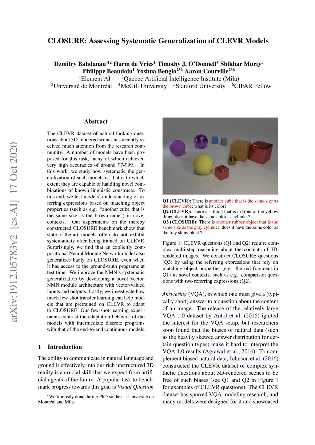 CLOSURE: Assessing Systematic Generalization of CLEVR Models