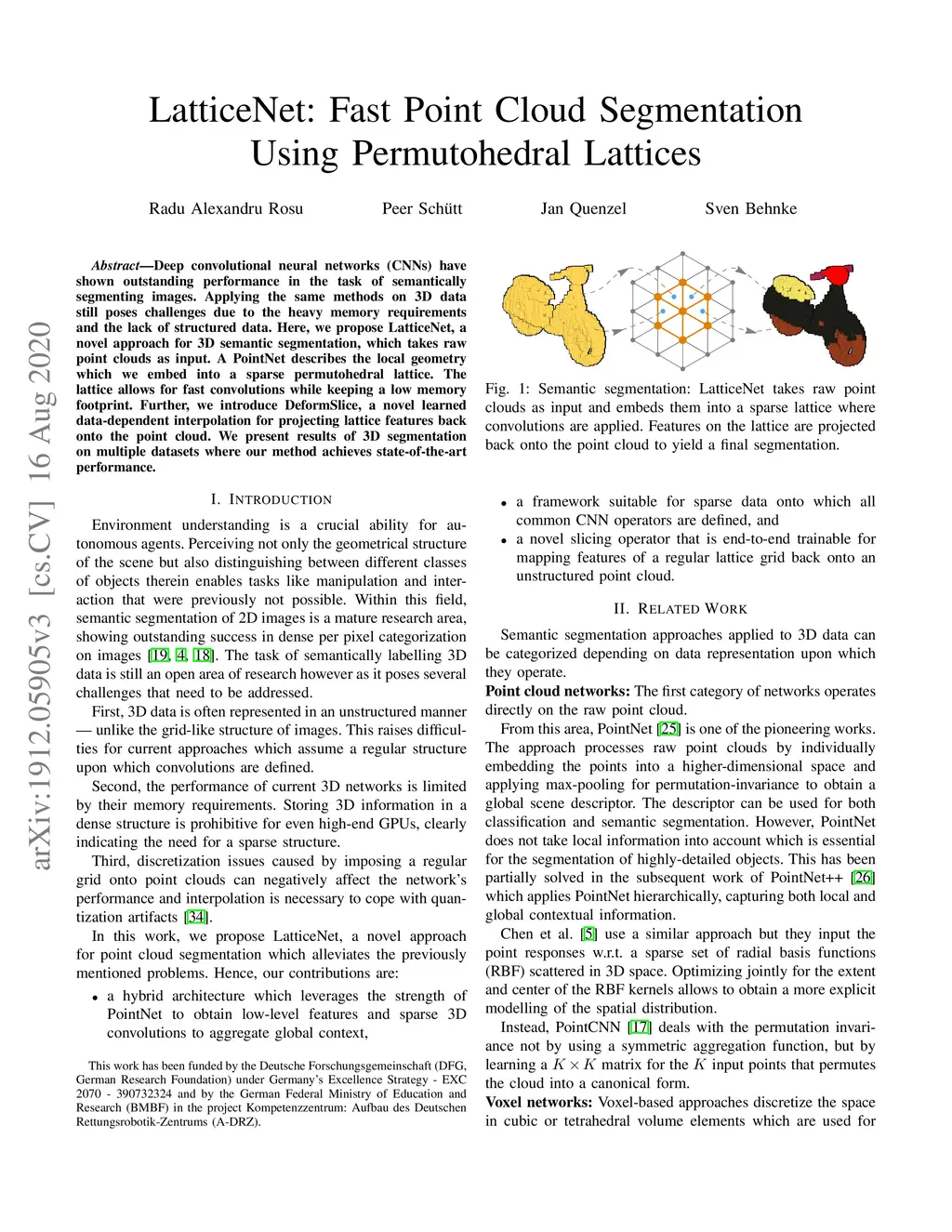 LatticeNet: Fast Point Cloud Segmentation Using Permutohedral Lattices