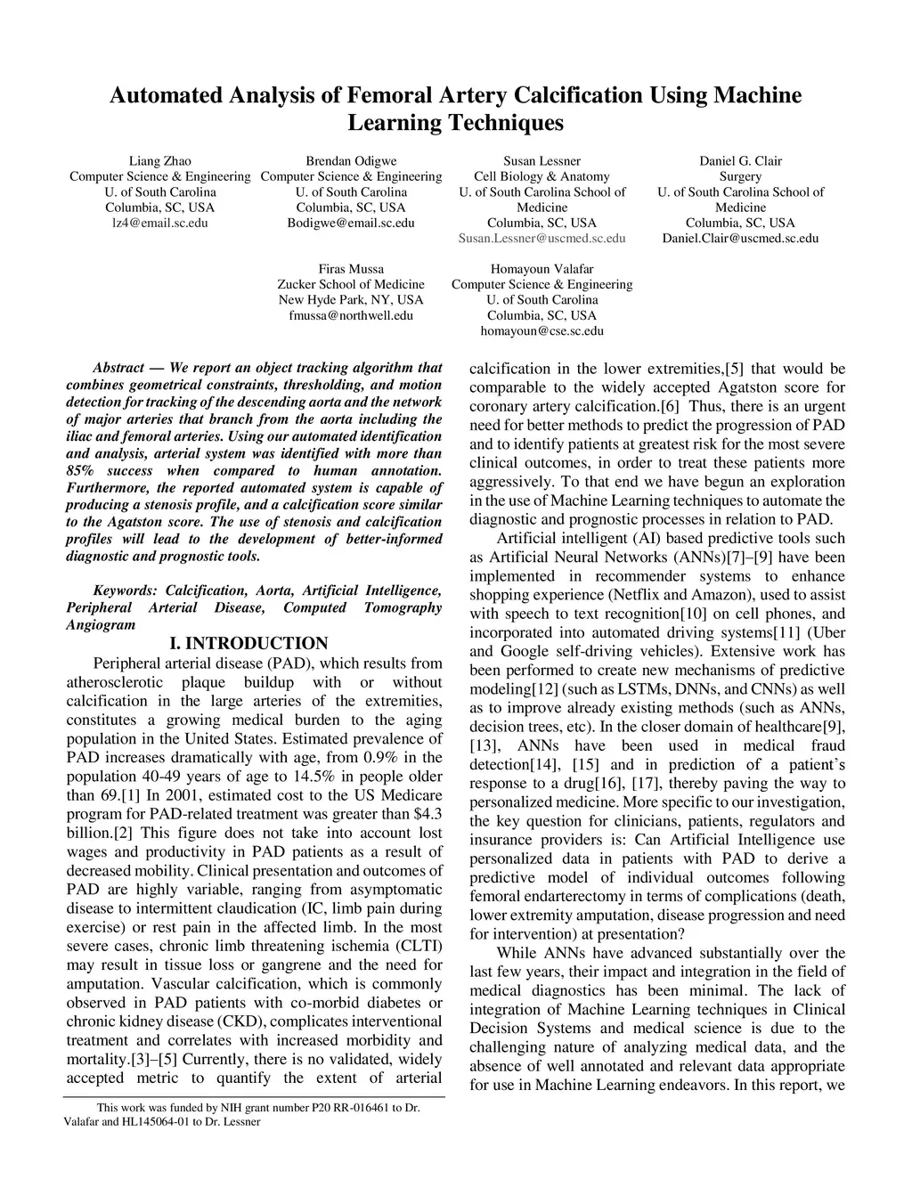 Automated Analysis of Femoral Artery Calcification Using Machine
