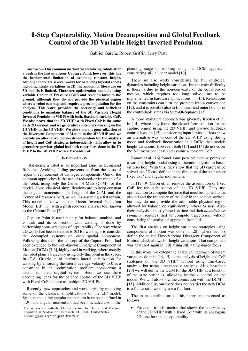 of the 3D Variable Height-Inverted Pendulum
