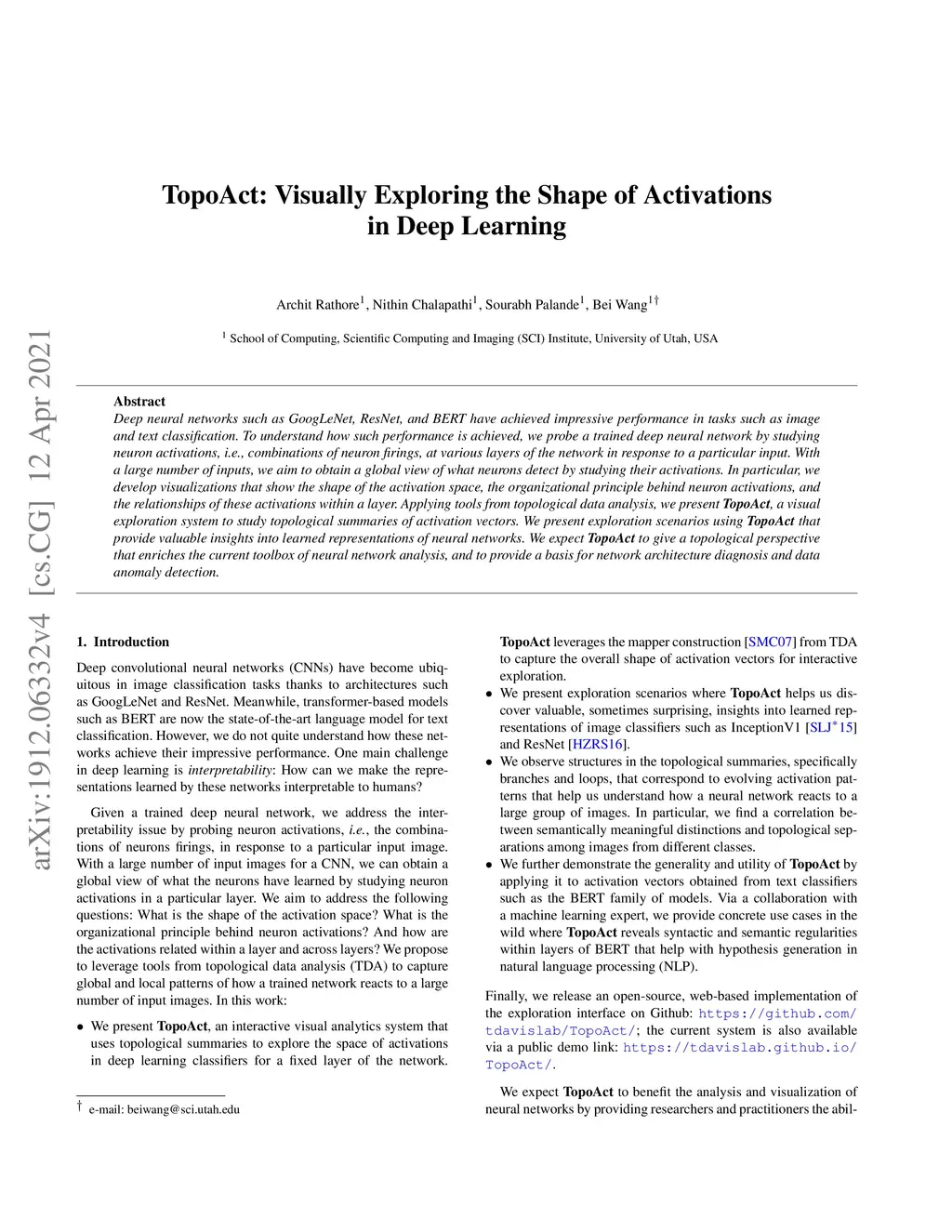 TopoAct: Visually Exploring the Shape of Activations in Deep Learning