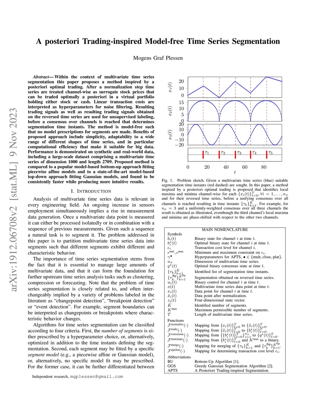 A posteriori Trading-inspired Model-free Time Series Segmentation
