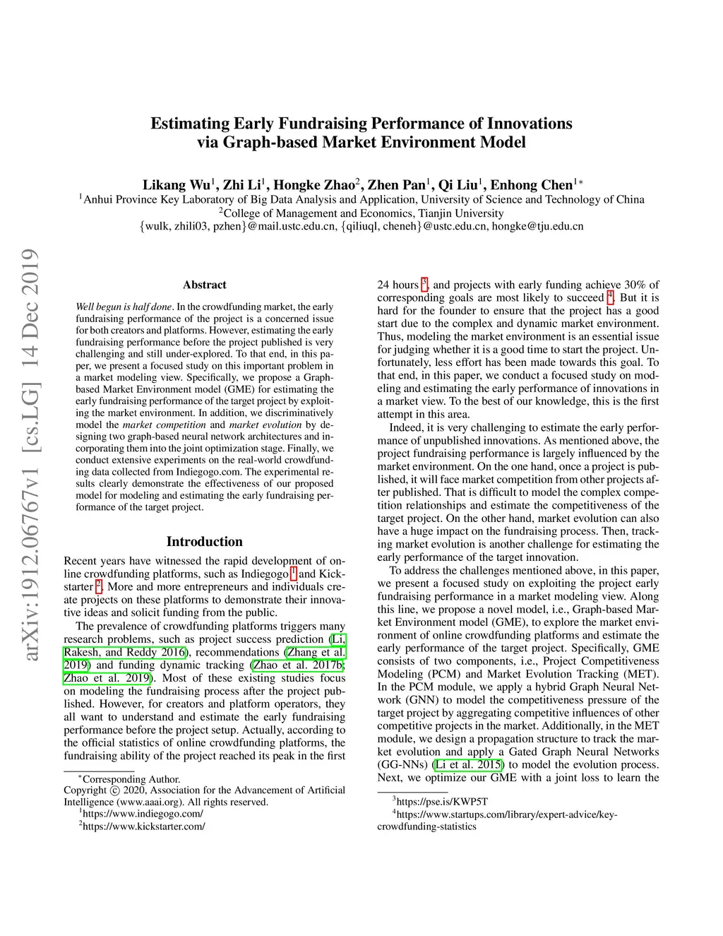 Estimating Early Fundraising Performance of Innovations via Graph-based
