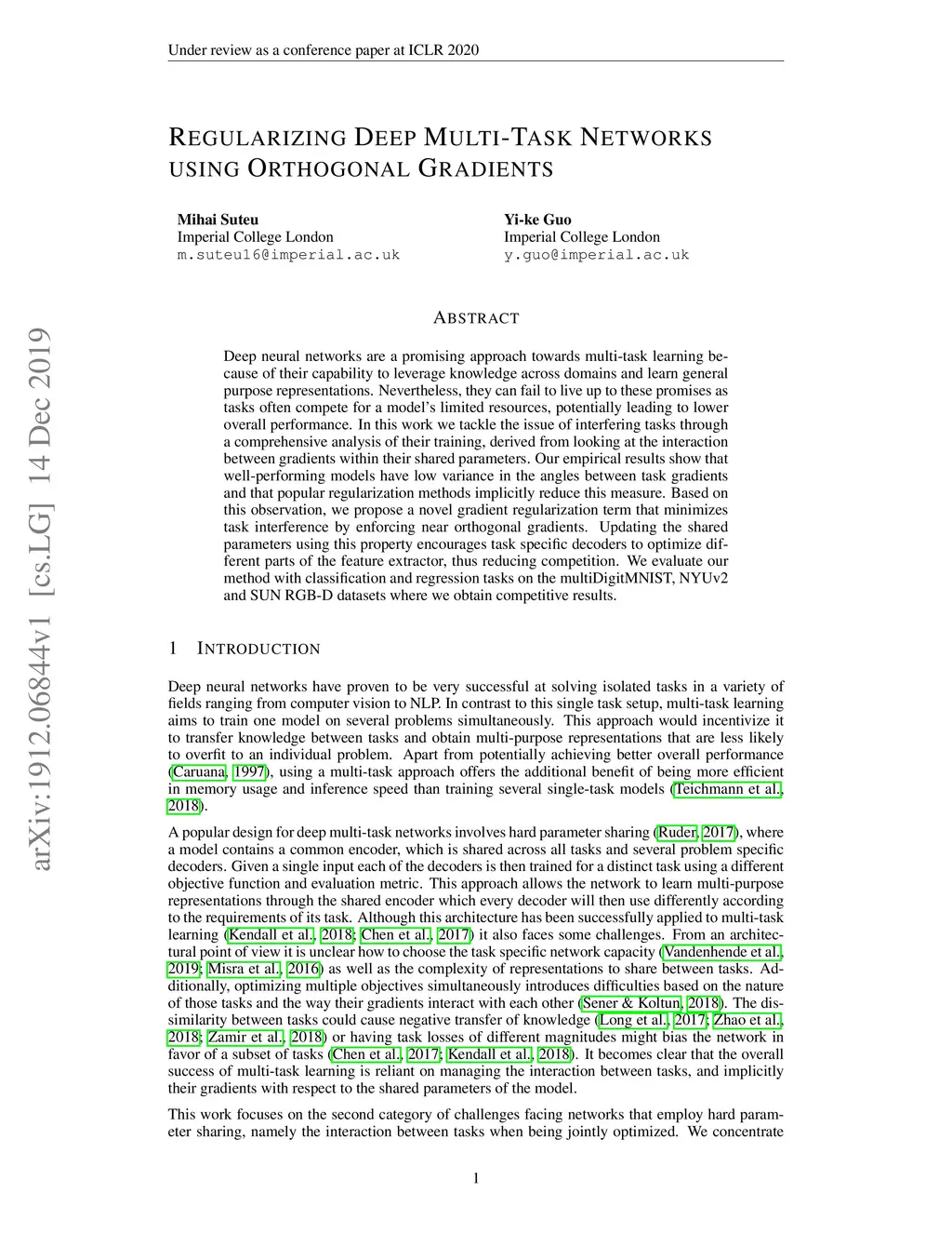 Regularizing Deep Multi-Task Networks using Orthogonal Gradients